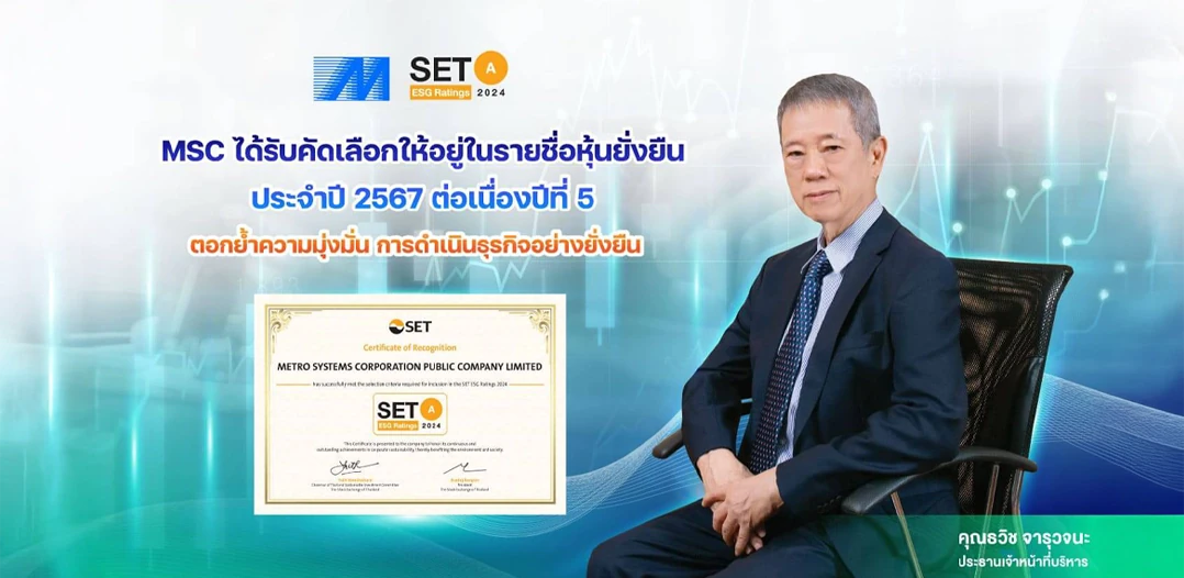 Awards and Recognitions Home About MSC Awards and Recognitions Sustainability Disclosure Acknowledgement 2024 Read More Year: Latest 2024 5-Star CGR Rating for 5 Years in a Row Read More Modern Work Award Secure Productivity 2024 Read More SET ESG Ratings for the Year 2024 Read More Palo Alto Networks 2024 Read More 1 2
