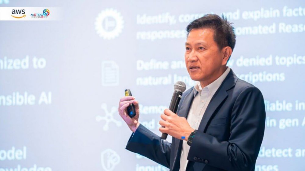 คุณวัตสัน ถิรภัทรพงศ์ ผู้จัดการประจำประเทศไทย บริษัท อะเมซอน เว็บ เซอร์วิสเซส (ประเทศไทย) จำกัด หรือ AWS กับหัวข้อ “AI-Powered Innovation with AWS Cloud” นำเสนอวิสัยทัศน์การประยุกต์ใช้ AI ผ่านโครงสร้างพื้นฐานระดับโลกของ AWS Cloud คุณวัตสันกล่าว “AWS ได้พัฒนาบริการด้าน AI และ Machine Learning ที่ครอบคลุมทุกความต้องการ ตั้งแต่ Amazon SageMaker สำหรับพัฒนาโมเดล ML, Amazon Rekognition สำหรับวิเคราะห์ภาพ ไปจนถึง Amazon Bedrock สำหรับ Foundation Models” โดยมอบประโยชน์สำคัญสามด้าน ได้แก่ โครงสร้างพื้นฐานที่ยืดหยุ่นและประหยัด เทคโนโลยี AI ขั้นสูงพร้อมใช้งาน และโซลูชันที่ตอบโจทย์ธุรกิจจริง “องค์กรไทยสามารถใช้ประโยชน์จาก AI บน AWS เพื่อเร่งการเปลี่ยนผ่านสู่ดิจิทัล เพิ่มประสิทธิภาพ และสร้างความได้เปรียบในการแข่งขัน เราพร้อมสนับสนุนให้องค์กรไทยก้าวสู่ยุค AI อย่างมั่นใจ” คุณวัตสันกล่าวทิ้งท้าย