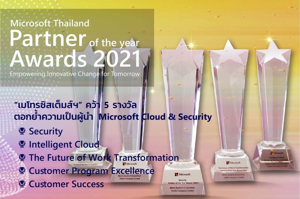 ด้วยความทุ่มเทในการมอบประสบการณ์การใช้งาน Microsoft ที่ดี่ที่สุดให้กับลูกค้ามาอย่างต่อเนื่อง ทำให้ Microsoft มอบรางวัล Customer Program Excellence Partner of the Year Award 2021  และ Customer Success Partner of the Year Award 2021 ให้แก่ บริษัท เมโทรซิสเต็มส์ คอร์ปอเรชั่น จำกัด (มหาชน) ตอกย้ำนิยาม “Customer Success is Our Business”  ที่ เมโทรซิสเต็มส์ฯ ยังคงยึดมั่นตามปรัชญาของบริษัท เรามุ่งหวังให้ลูกค้าได้รับ Solution & Services ที่เหมาะสมและตอบโจทย์กับองค์กรของลูกค้าให้มากที่สุด และไม่หยุดผลักดัน และพัฒนาการนำเทคโนโลยีใหม่ๆ มาช่วยในการขับเคลื่อนองค์กรให้ประสบความสำเร็จอีกด้วย